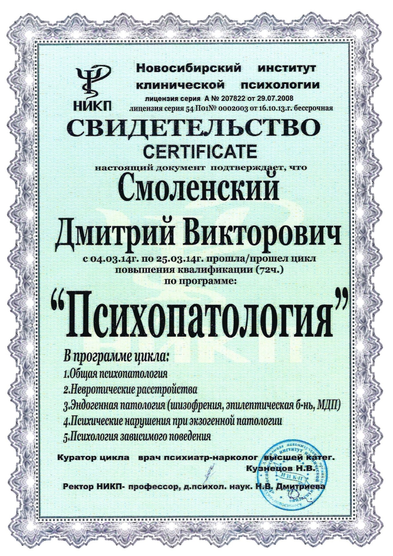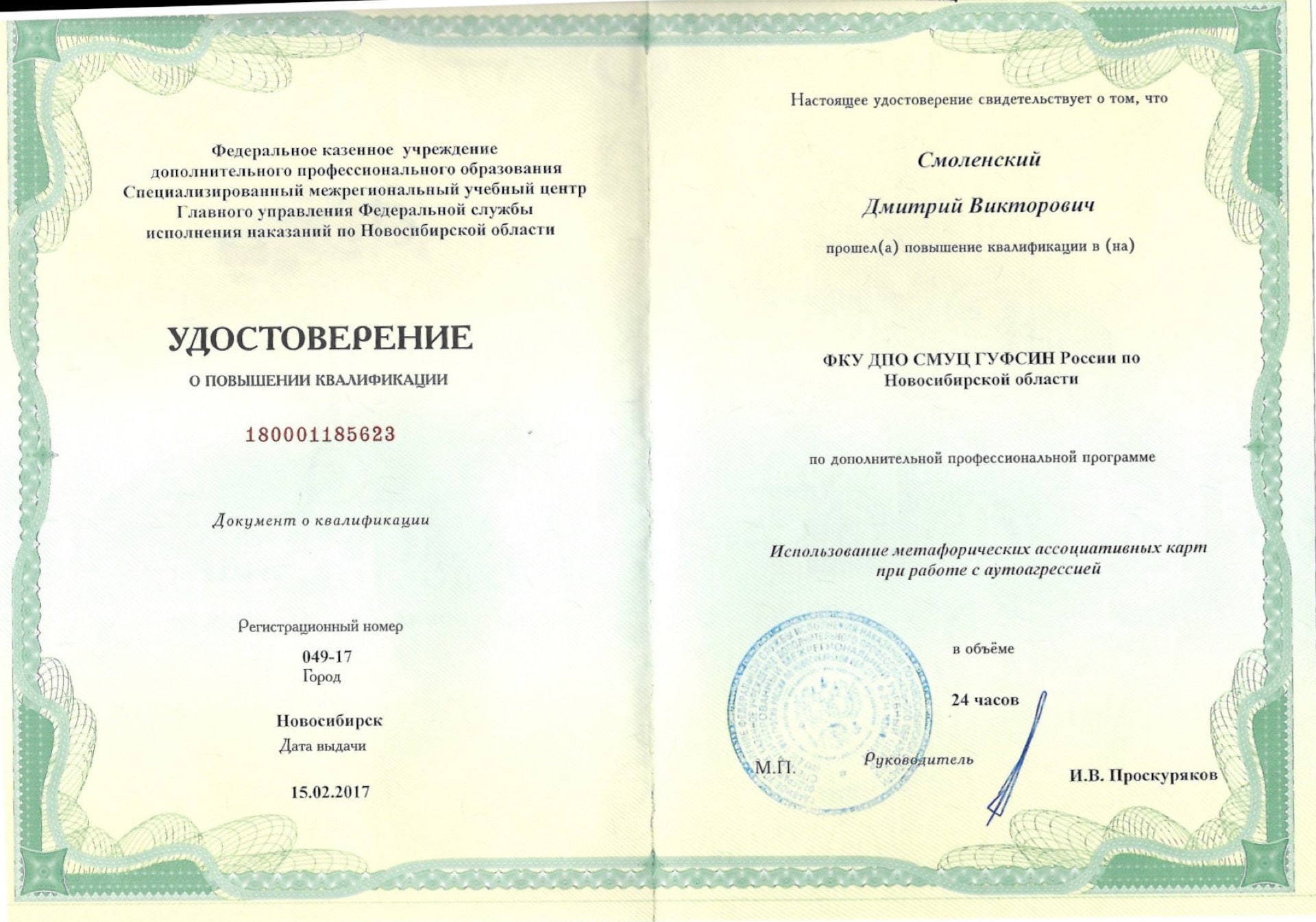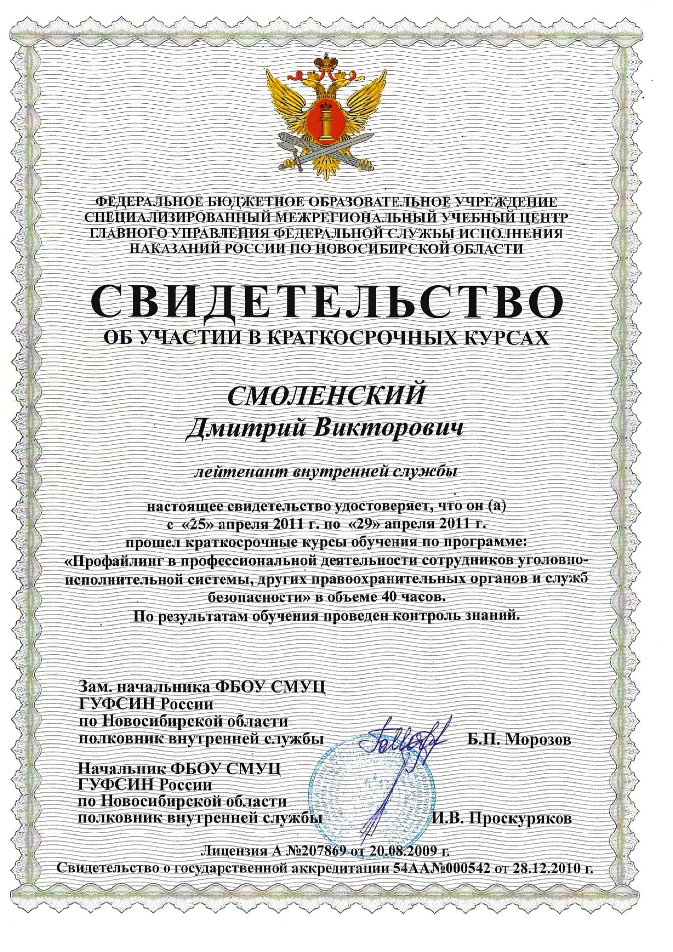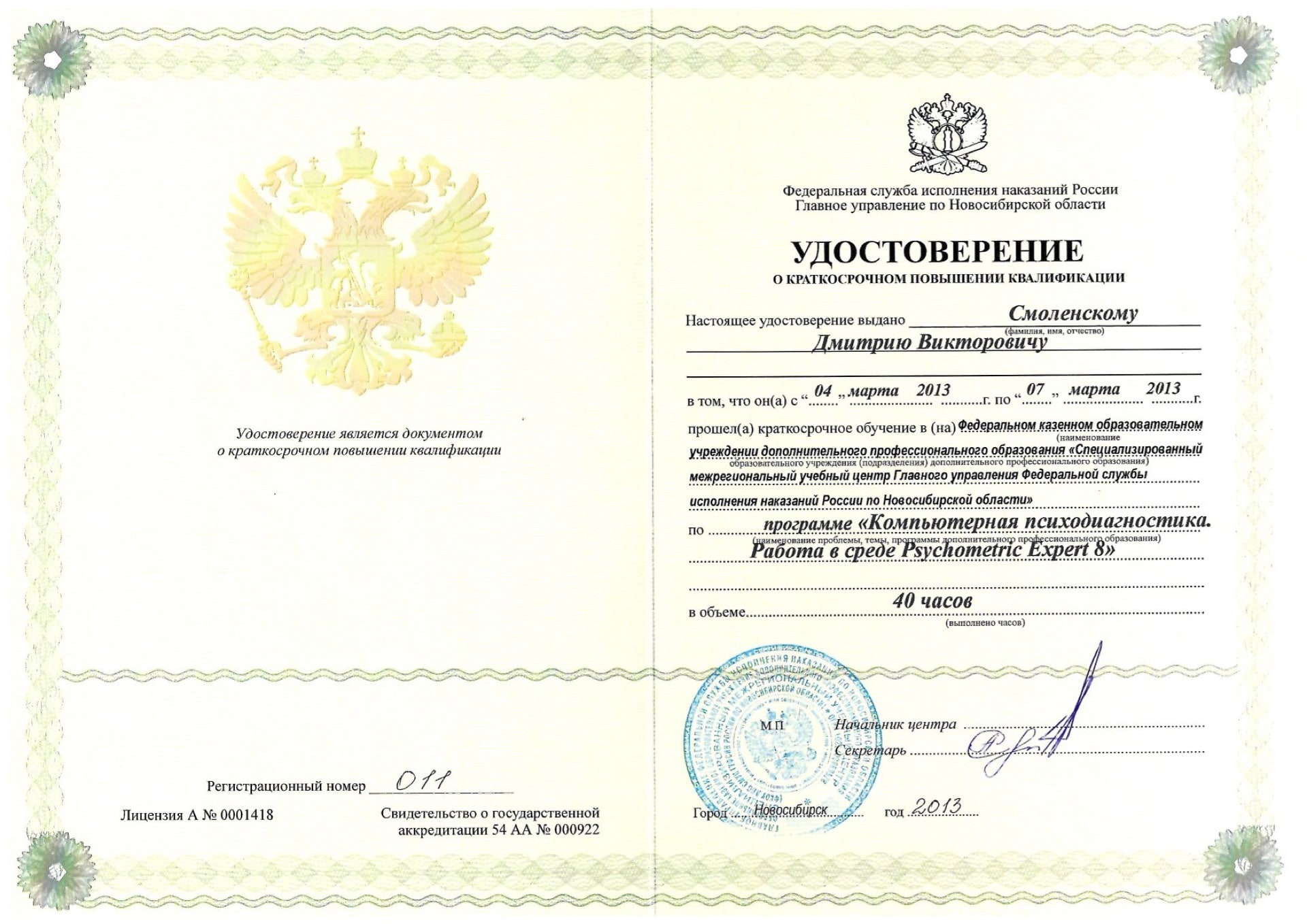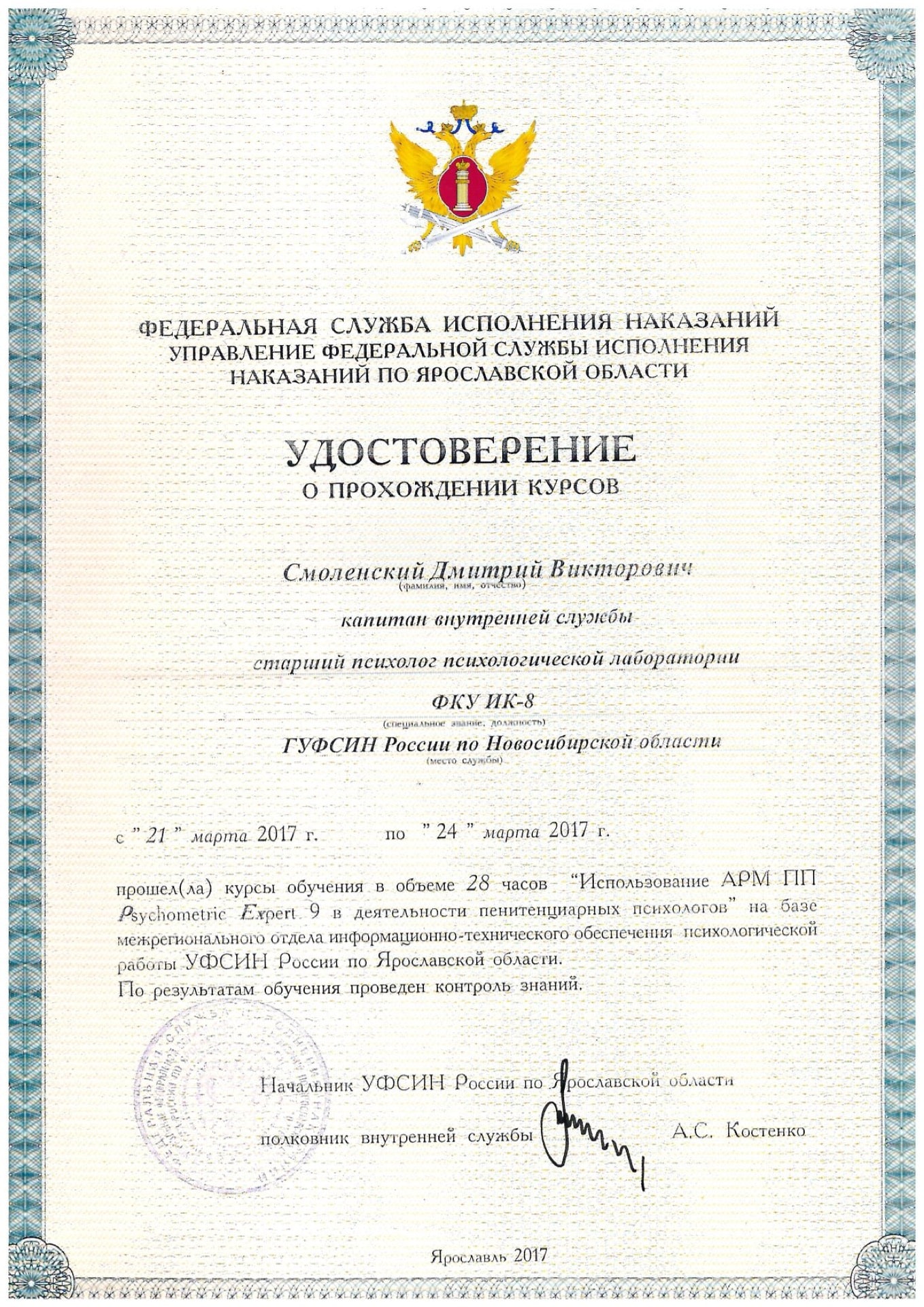 - Сибирский институт практической психологии, педагогики и социальной работы. Профессиональная переподготовка «Проведение психофизиологического исследования с использованием полиграфа». 2024 г.