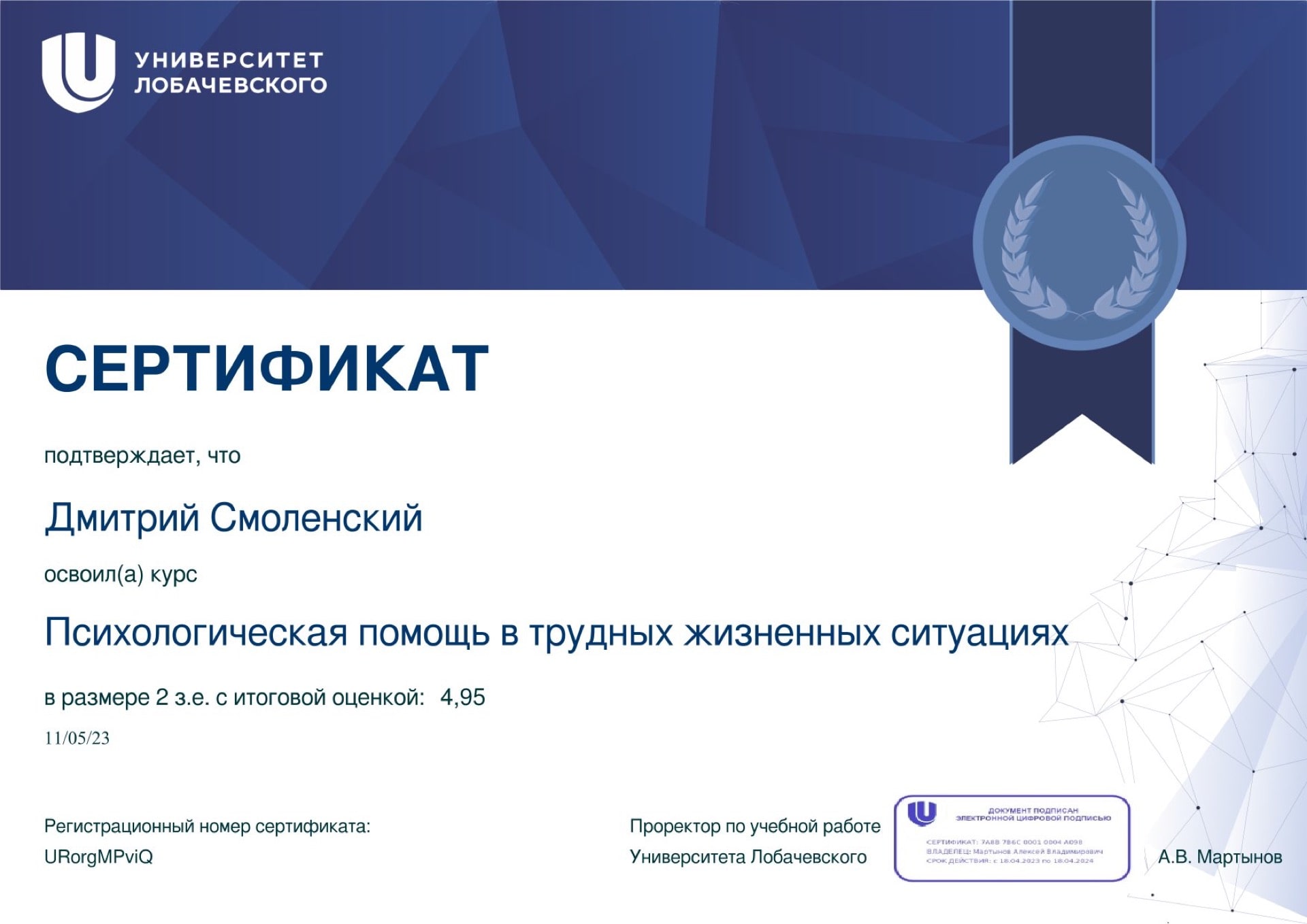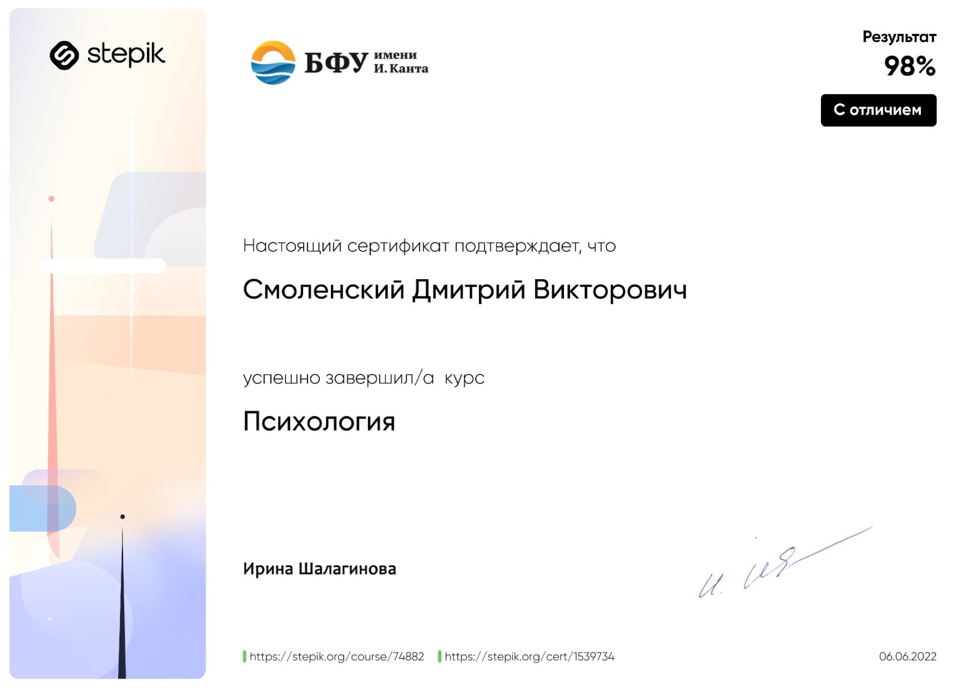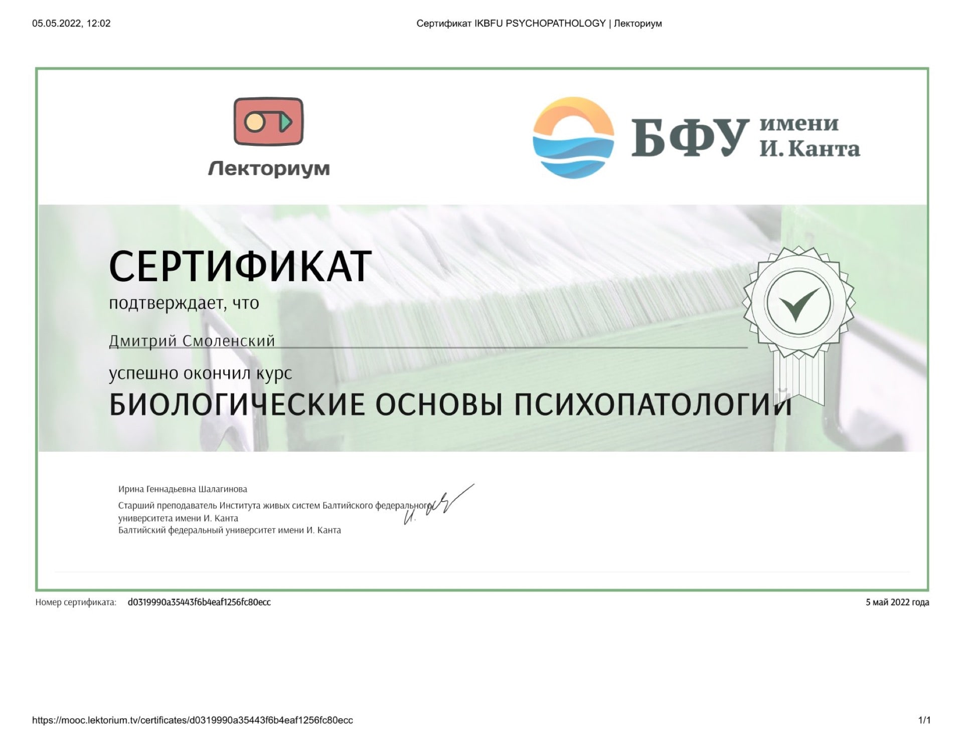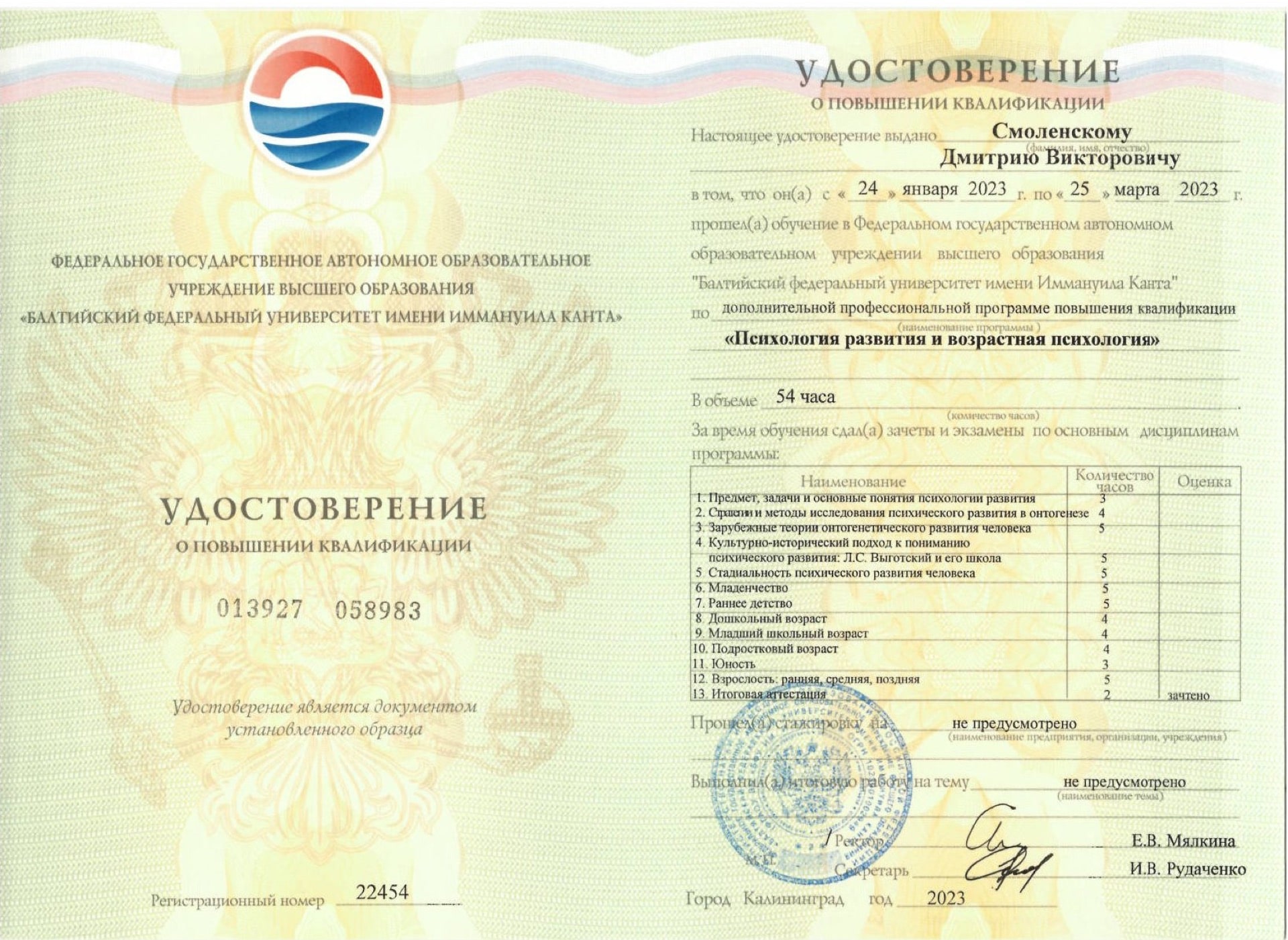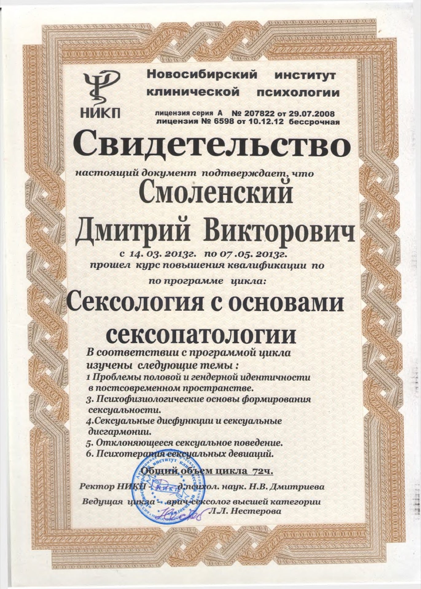 - Сибирский институт практической психологии, педагогики и социальной работы. Профессиональная переподготовка «Проведение психофизиологического исследования с использованием полиграфа». 2024 г.